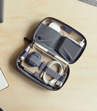 Description: Organise your tech accessories without tangles. This generously sized kit fits all your tech accessories in one place. Optimised for larger accessories and extra bits. Zips out flat for easy access. Magnetic slip pocket fits a power bank. Stretch mesh pockets store bits and pieces. Floating wall with elastic cable organiser inside.