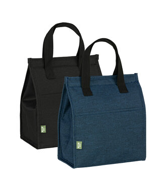 Description: Stylish Lunch Cooler made from 300d R-pet recycled polyester with carry handles. Item features a large external slip pocket and PEVA lining.