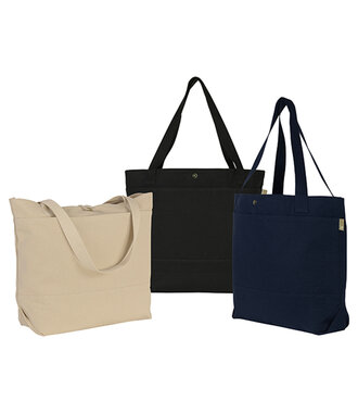 Description: The Walmer Popper Tote is a soft-feel bag made from RPET material. Long (self coloured) cotton webbing handles and a handy popper on the top.