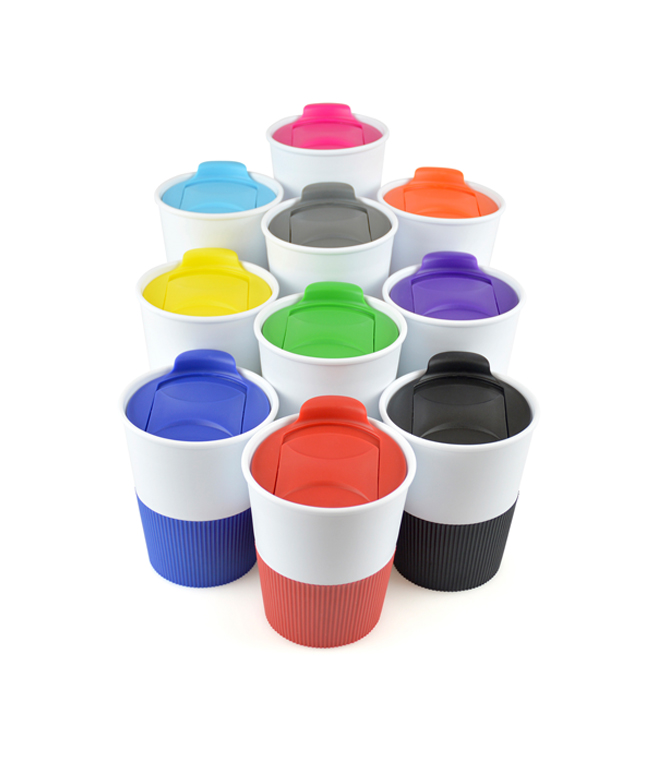 Description: Grippy single wall travel mug featuring a push on lid with a sliding sipper and rubberised grip on the bottom half. Choose from either the standard 100% polypropylene version or the more sustainable bamboo version which is manufactured from 50% bamboo fibres and 50% polypropylene.