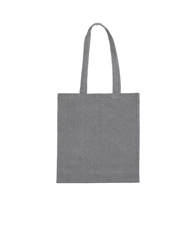 Description: Recycled Eco 6.5oz Cotton Tote Shopper (180gsm) with long handles. The fabric used to manufacture this bag is 70% recycled cotton from off cuts and waste cotton blended with 30% polyester (rPET which is recycled fabric from plastic bottles) for extra structure. Due it's totally recycled nature, every bag and batch will differ slightly.