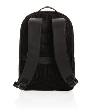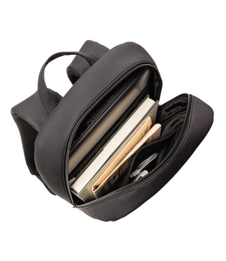 Description: A structured backpack made with soft PU in a clean and sleek style with tonal zippers. The backpack features a top zip closure, top carrying handle, adjustable shoulder straps, external zip pocket, interior zip pocket, luggage strap and a 15.6 inch laptop pocket.
