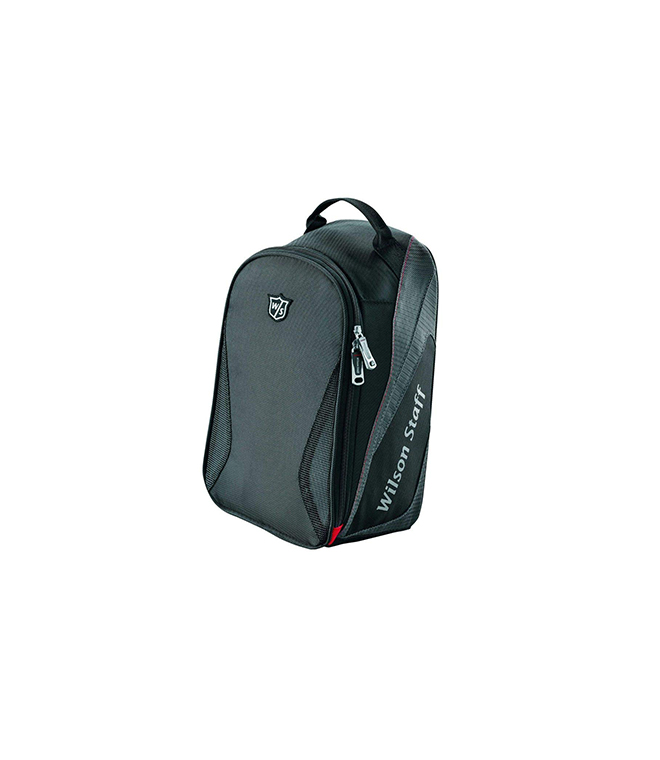 Description: Wilson Staff Golf Shoe Bag with a full size opening top, mesh vented panels and a large carrying handle. Suitable for storing shoes up to size 13. Can be embroidered or full colour transfer printed.