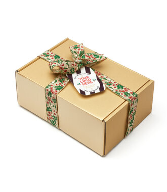 Description: We’ve got your seasonal gifting all wrapped up this winter with our gold gift box. We can customise the contents and the box for the perfect, personalised parcel.